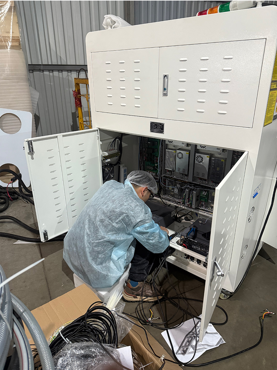 Recently, our engineering team was dispatched to a major packaging factory in Russia to complete the installation and commissioning of a 3D Galvo Head Model Laser Scoring Machine. This high-precision laser system is designed to integrate directly onto the customer’s existing packaging production line, enabling advanced laser scoring, perforation, and window-cutting on multilayer flexible packaging materials.